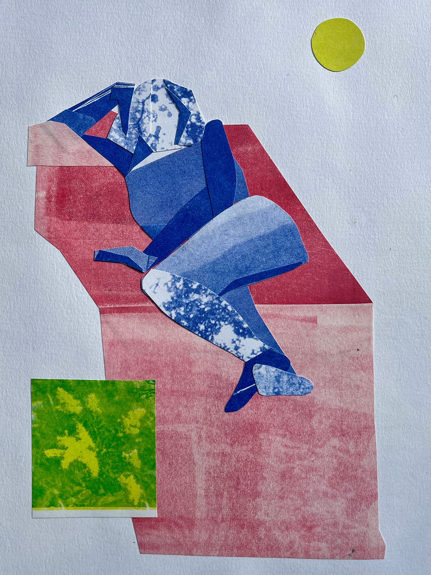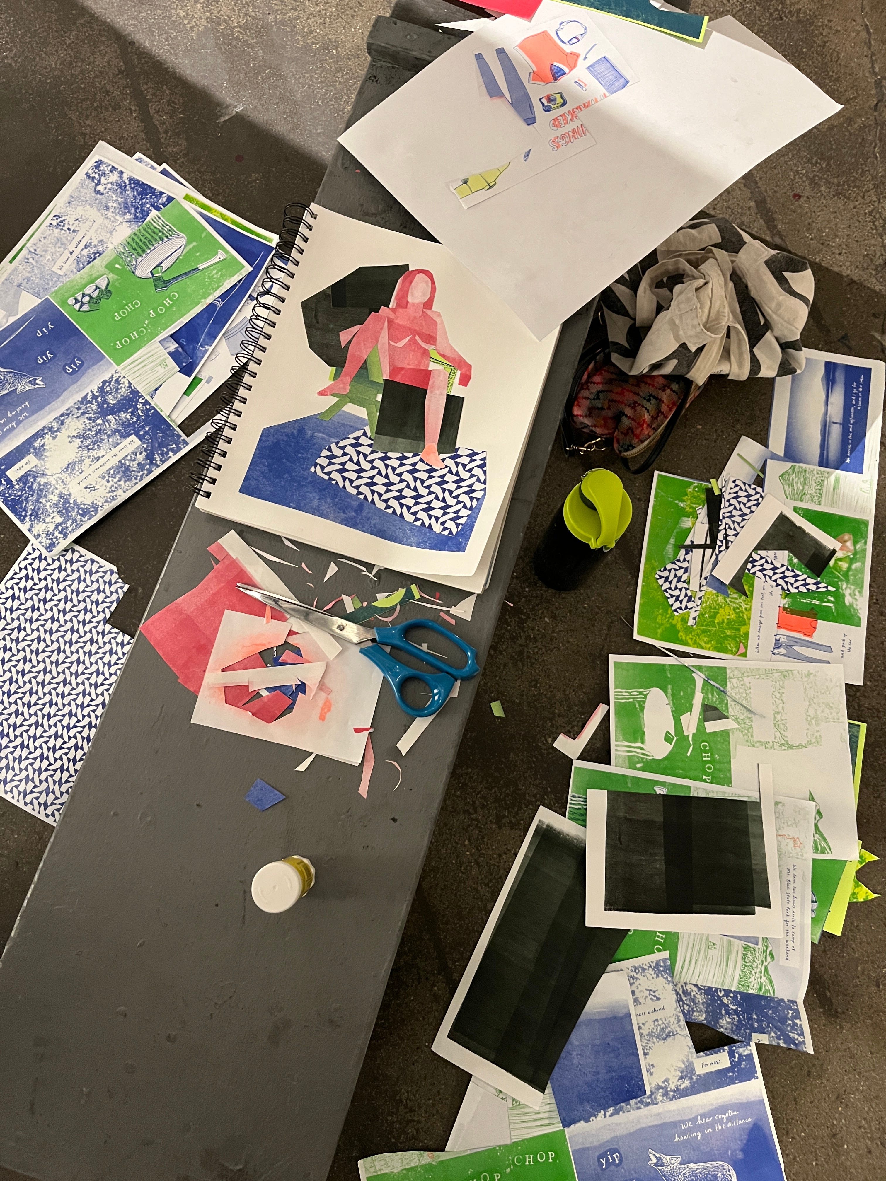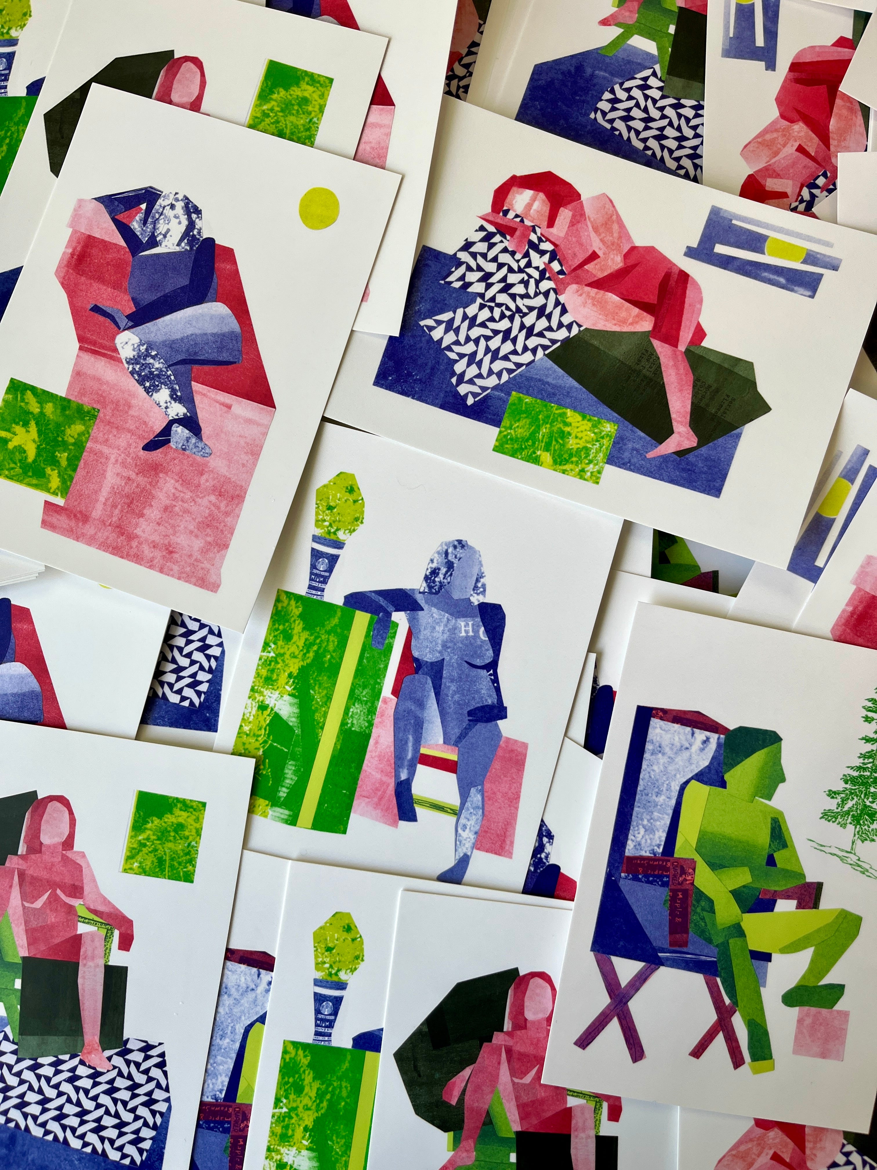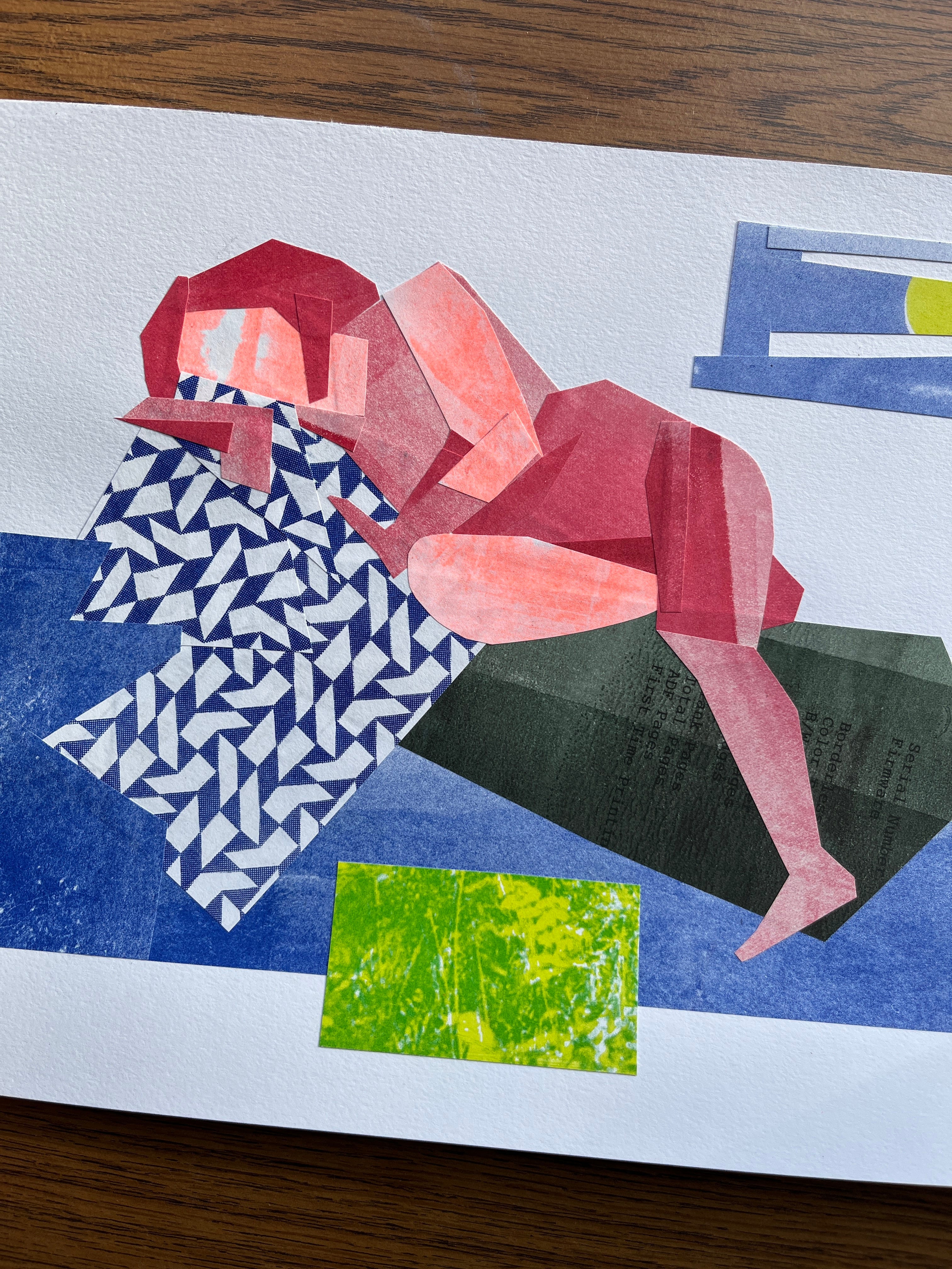 Experimenting with imagery and new techniques is a huge part of my artistic process. Collage had been one of my preferred techniques for many years, but I’ve never used risograph textures before. Now I want to make even larger figurative collages with these bold colors!