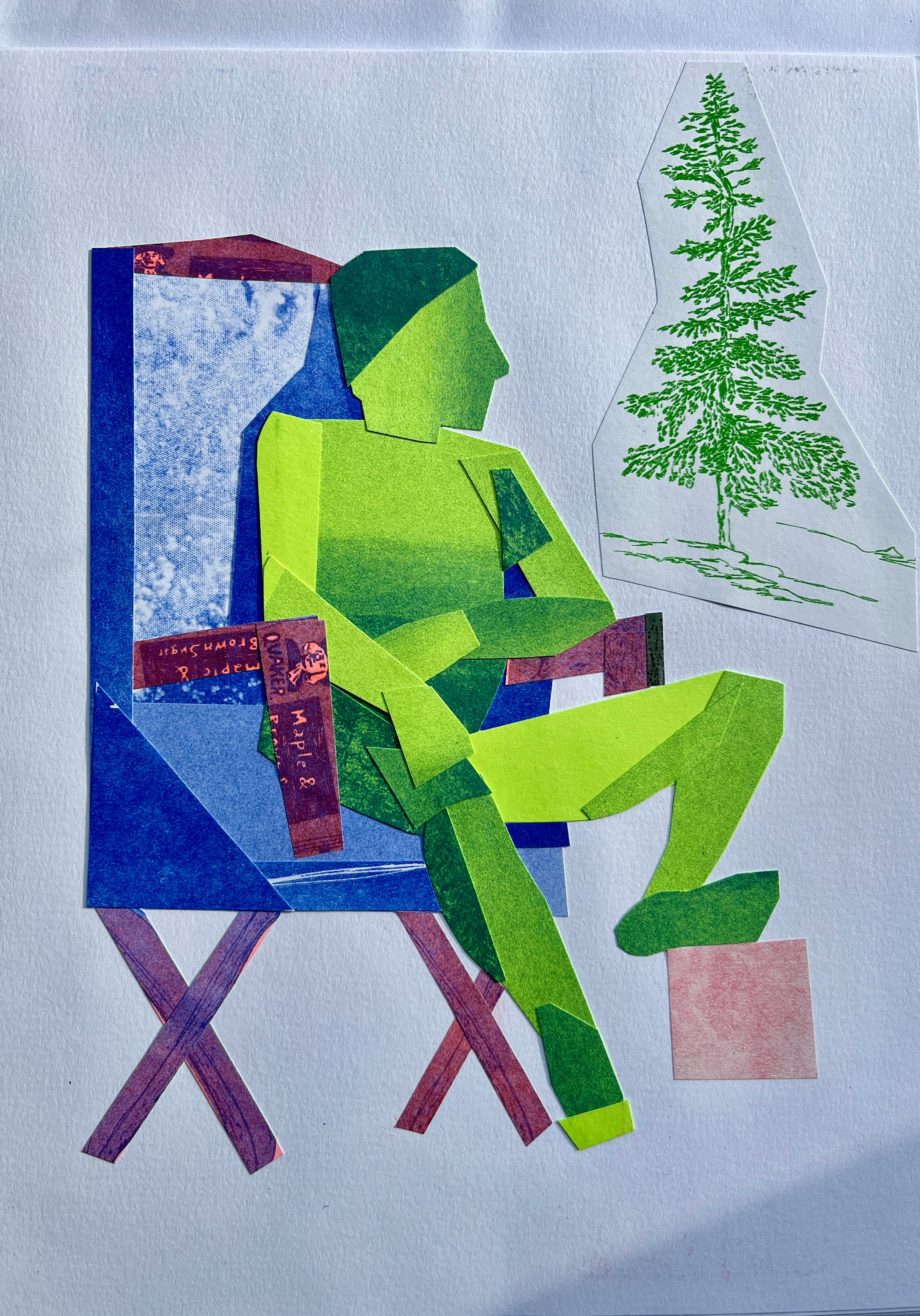 Here is my first figurative collage. I was in a state of flow for that entire hour. Cutting and arranging shapes in a fixed amount of time forced me to make decisions quickly and spontaneously. There was no time to be fussy.